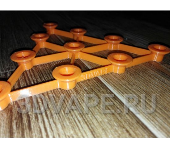 Подставка ТРЕУГОЛЬНИК / TRIGON рассчитана на установку 10 атомайзеров (баков / дрипок) со стандартным 510 коннектором и диаметром до 31 мм. Идеальна для ДОМА, для ВЭЙП шопов и вэйп выставок. Авторская модель Королева Евгения (Россия, 3DVAPE.RU) от 6 апреля 2018 года. Изготовление под заказ.
